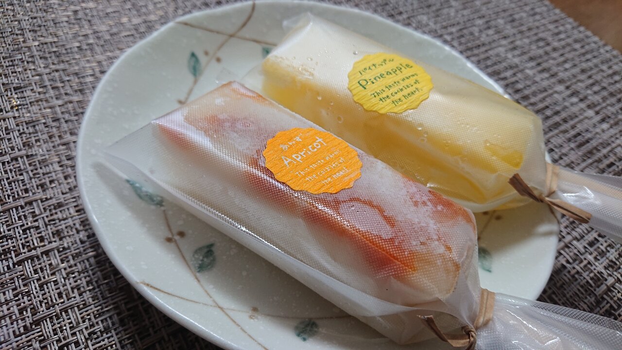 こちらをお店で購入して自宅に持ち帰ったのであります。お味は"あんず"と"パイナップル"をチョイスしました。
