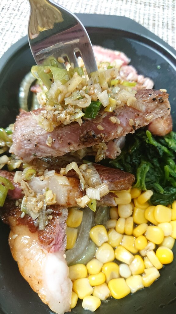 それでは頂いてまいりますね。ネギを沢山のっけてっと!
