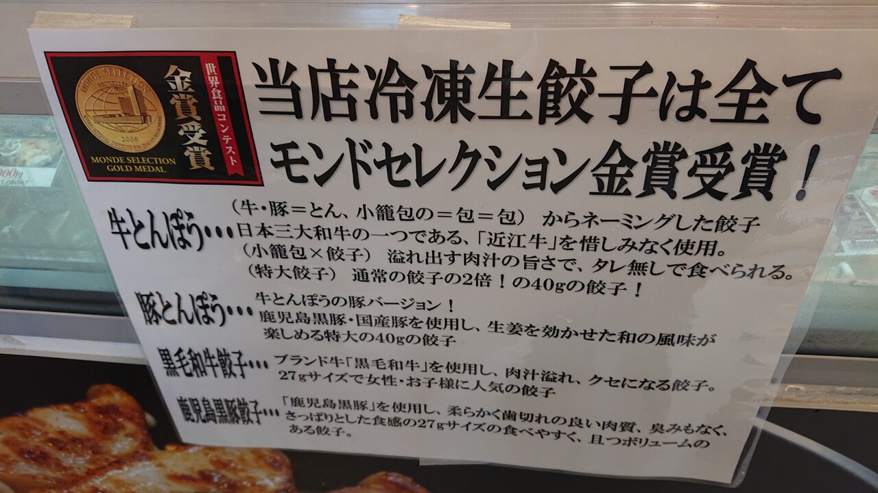 冷凍生餃子は大きく4つの種類があるのですが、特にオススメだという"牛とんぽう"をオーダー。