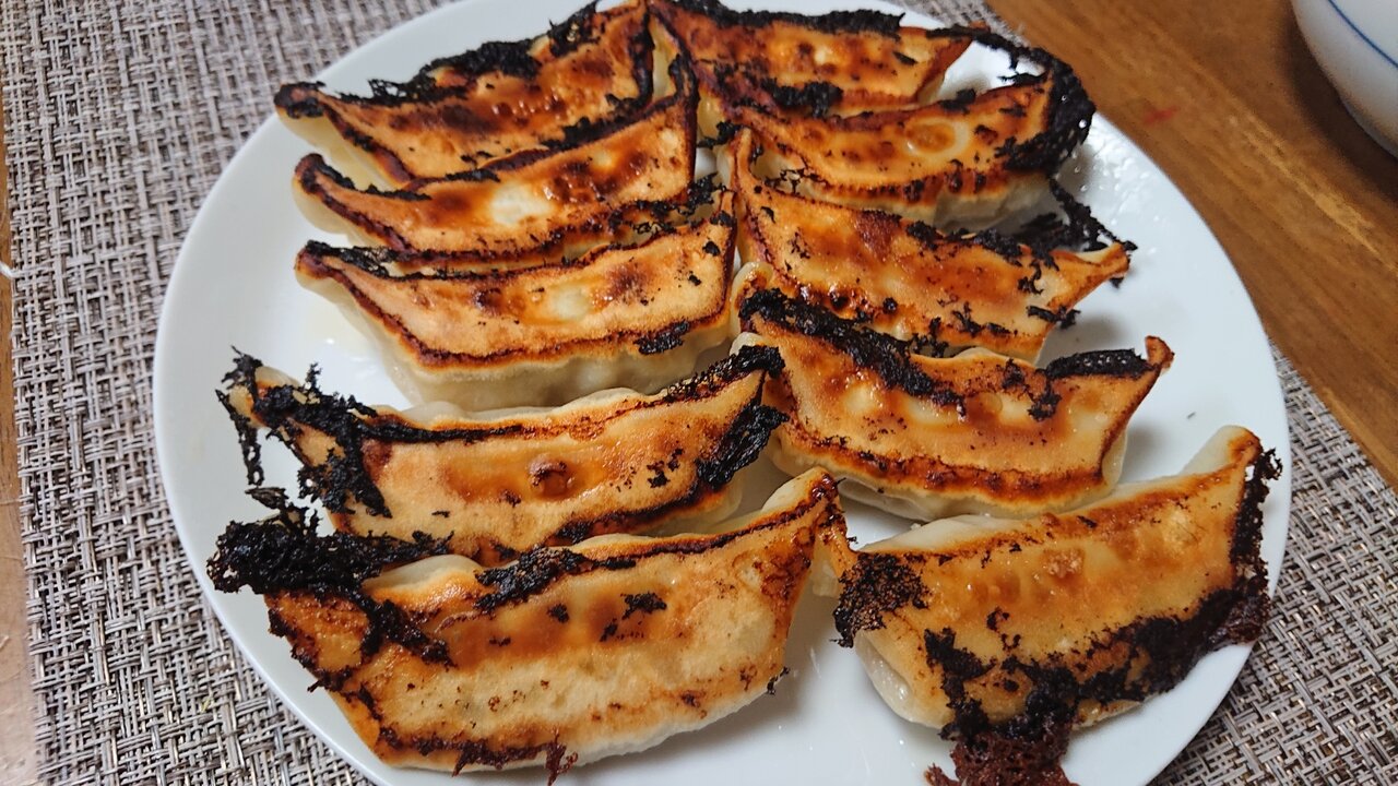 さてさて、私はといいますと自宅に冷凍生餃子を持ち帰りフライパンで焼いたのがこちらであります!