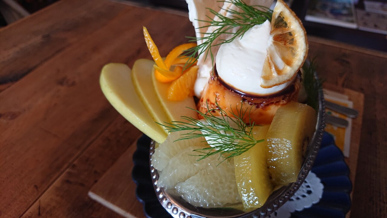 今回のオーダーは"レモンと塩メレンゲのプリンアラモード"と"フレッシュメロンクリームソーダ"にしてみました。(別のオーダーもしましたが、お小遣いの関係で明日別記事にてご紹介しますw)