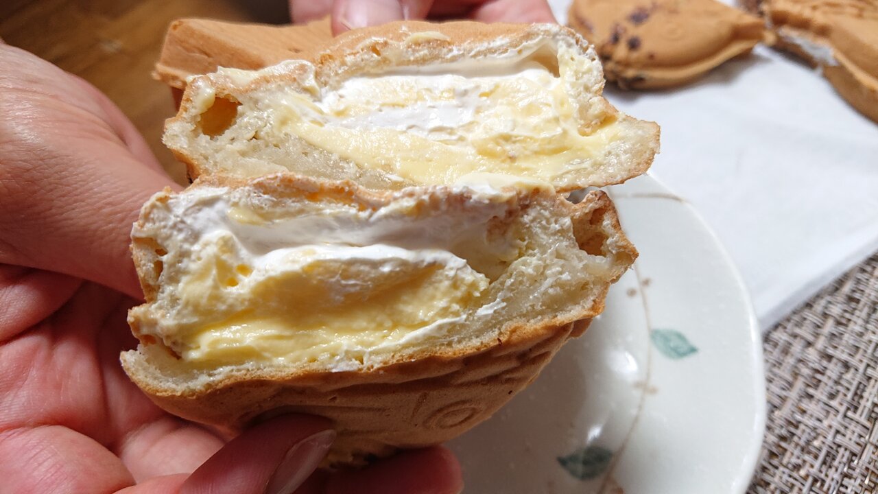 鯛焼き部分の生地はもっちもち!そこにカスタードクリームやチョコレートクリームの美味しさがマッチして美味しいですね。