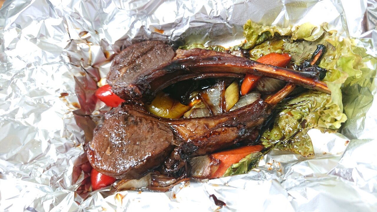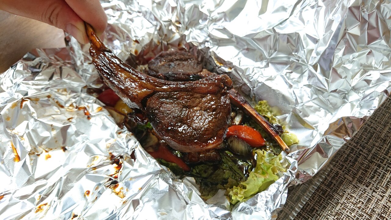 お店で待つこと15分~20分くらいだったでしょうかね。料理を渡していただき帰宅。ラムチョップだけかと思ったらご飯もついてました(別料金)。