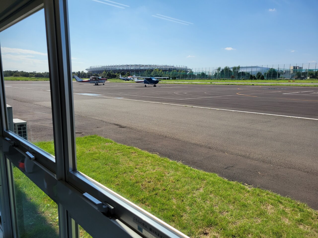 席からみた調布飛行場の景色はこちらであります。
