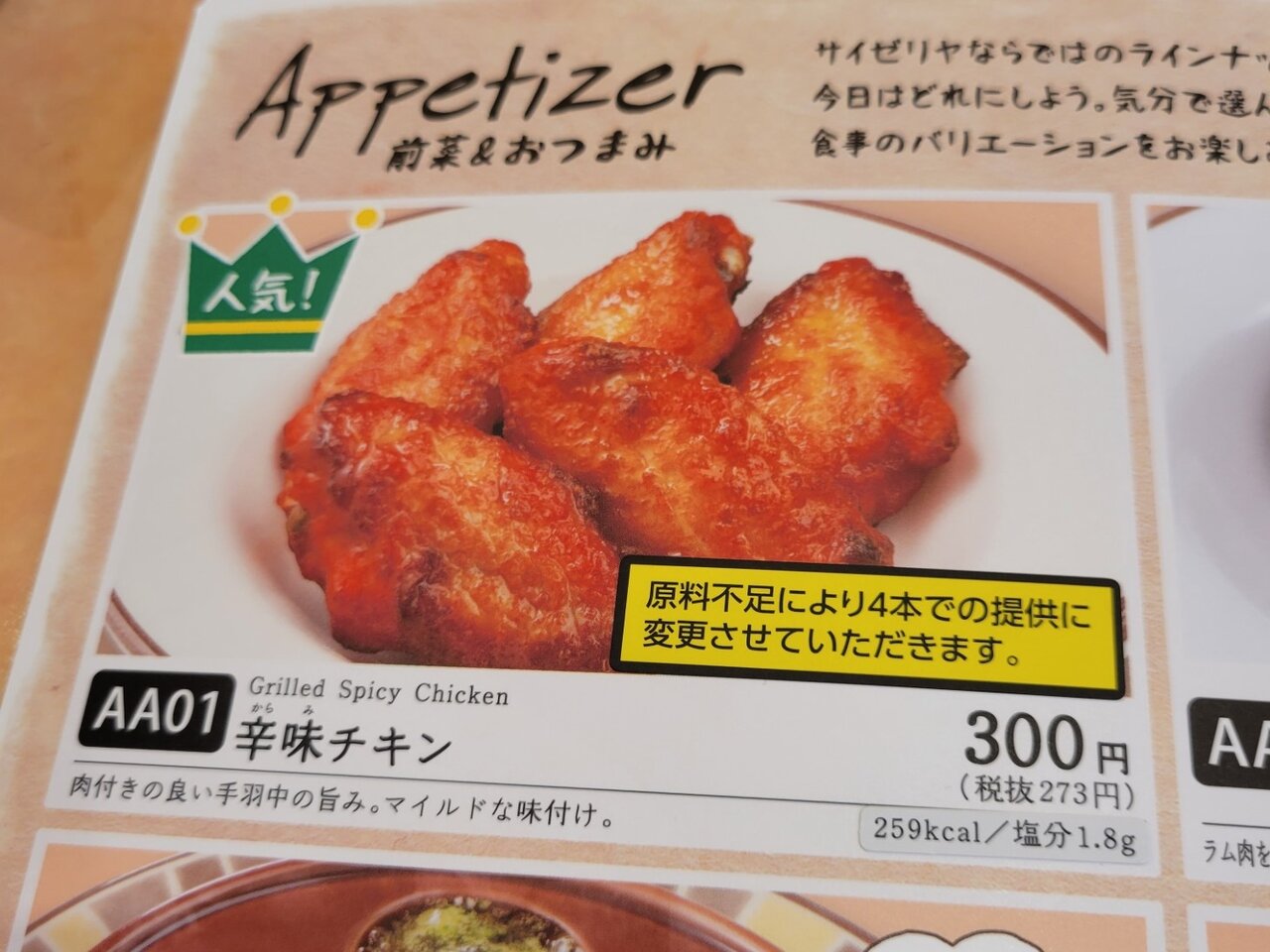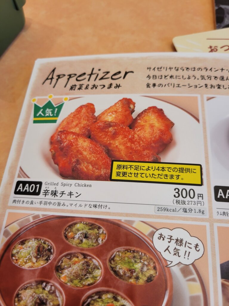 コスパ高く頑張るサイゼリヤがもう値段を上げざるを得ないのであれば、どうしても仕方ないんだと判断して、今後も辛味チキンを楽しみたいと思います(涙)