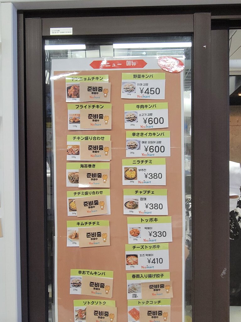 キンパにチヂミにチャプチェにトッポギに餃子に、豊富な品ぞろえであります。