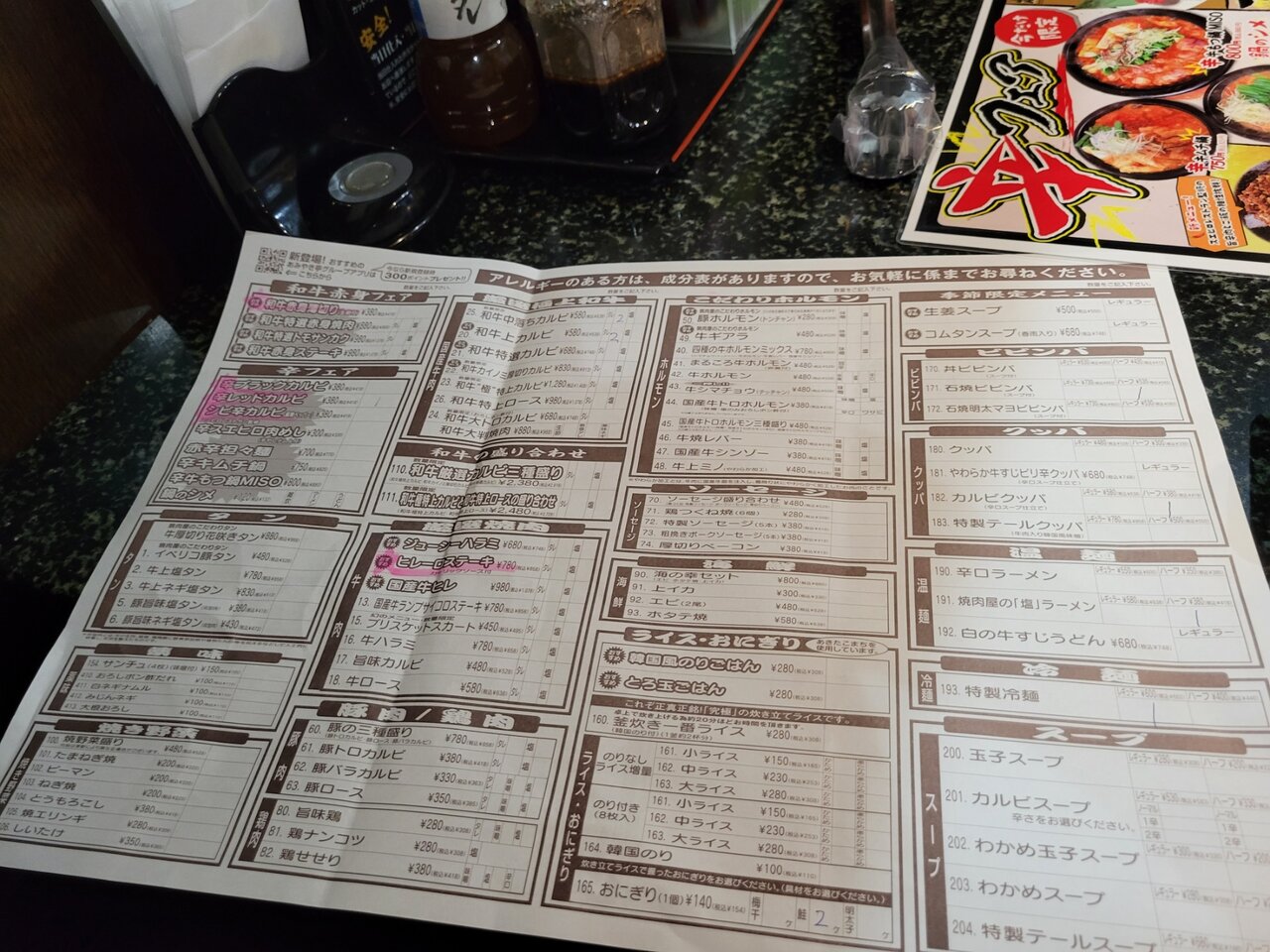 あと、以前来たときは和牛は特別メニュー的なイメージだったんですが、今回きたらお肉は基本和牛がメイン。安い肉より単価を上げて、和牛を安くお得に提供し、お客さんの満足度を高める戦略にでたのではと思われます。