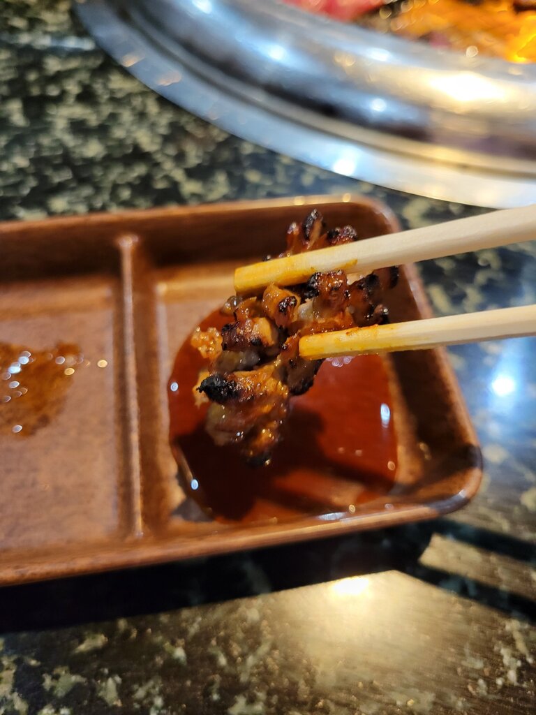 次は、辛レッドカルビ。これは和牛カルビとは違って、比較的固めな印象のお肉でしたが、これもまたコリコリして辛くて料理としてはとても美味しいです。ビールに合う。美味い。