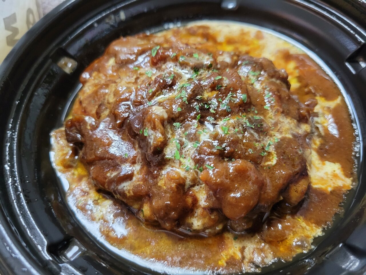 最後はブラウンハンバーグ丼。これが美味いんですよ。