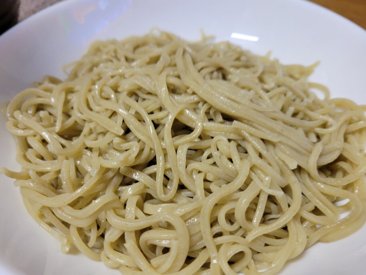 そうして茹で上がりましたのがこちらのお蕎麦であります。美味しそうですね。