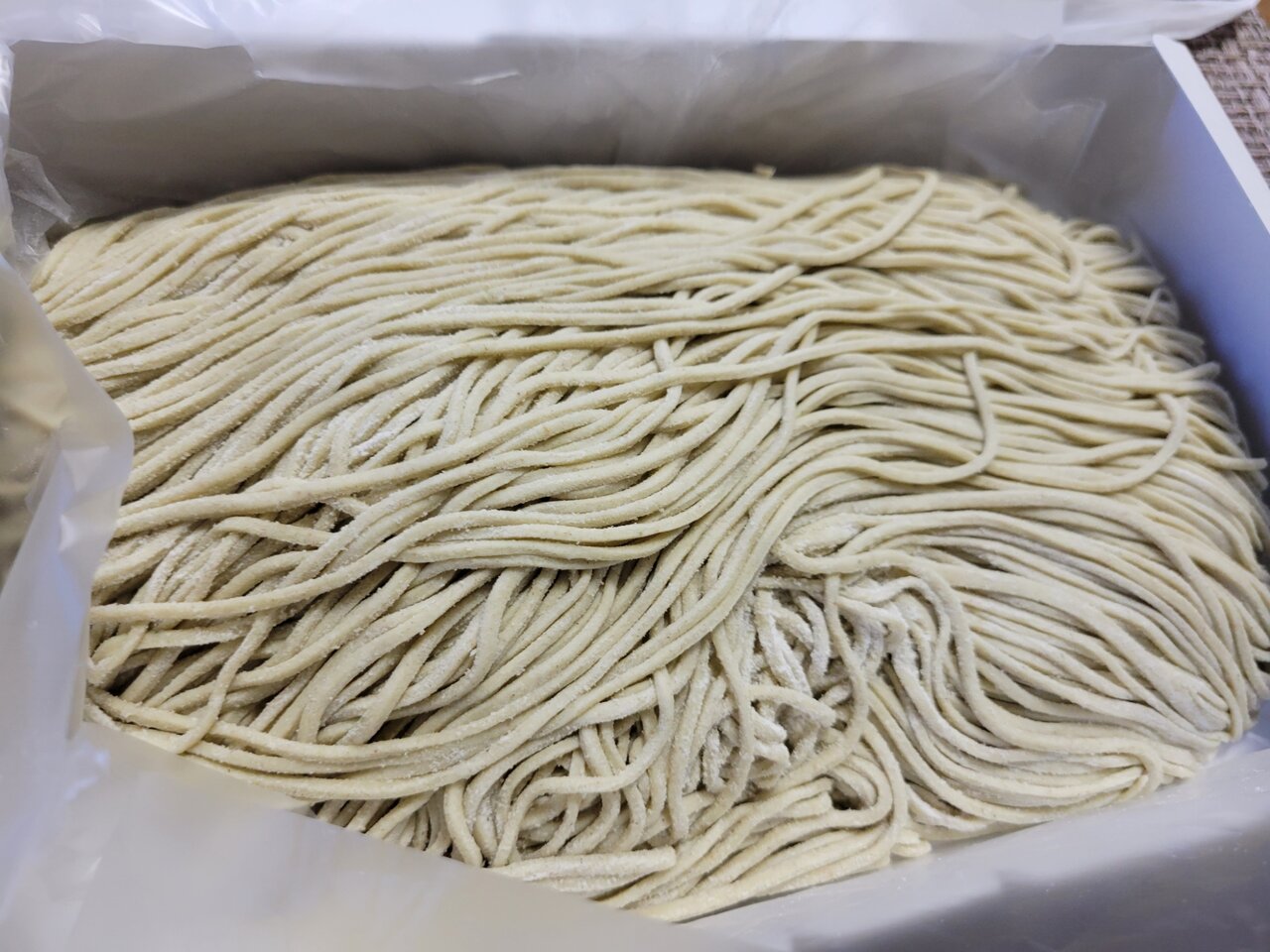 お店の人のオススメでいうと、一気に何人前も茹でずに多くても2人前ゆでるのが良いとのこと。私はその話をききましたので、3人前を買いましたけど1人前ずつ茹でました。お湯に蕎麦を入れた時に、お店の大鍋ならお湯の温度が下がらずに茹でれると思うのですが、自宅の小さい鍋だと蕎麦を入れたところ温度が下がっちゃうので、多く入れるとその分お湯の温度が戻りづらく、変な茹で具合になっちゃうんですよね。なので、自宅で一番大きな鍋で1人前ずつ茹でることを私はお勧めします!