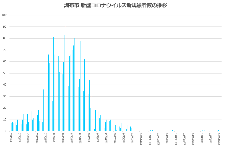調布市の新型コロナウイルスの新規患者は12月16日に11日ぶり1人の発生となっています。