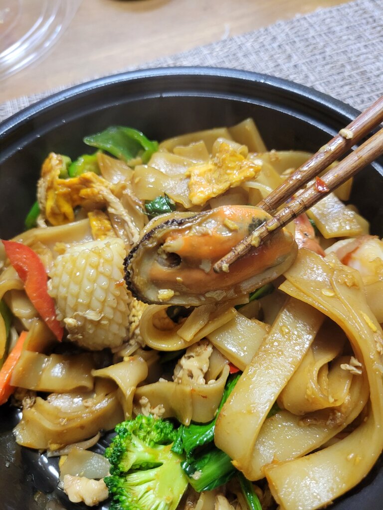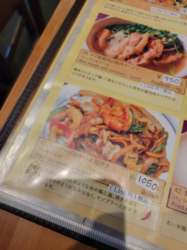 辛さも甘辛な料理がタイ料理には多いですが、こちらはストレートに辛いですね。美味しい。麺が写真の通りに物凄く幅広なんですけど、モチモチで辛い旨味をまとっているので絶妙です。