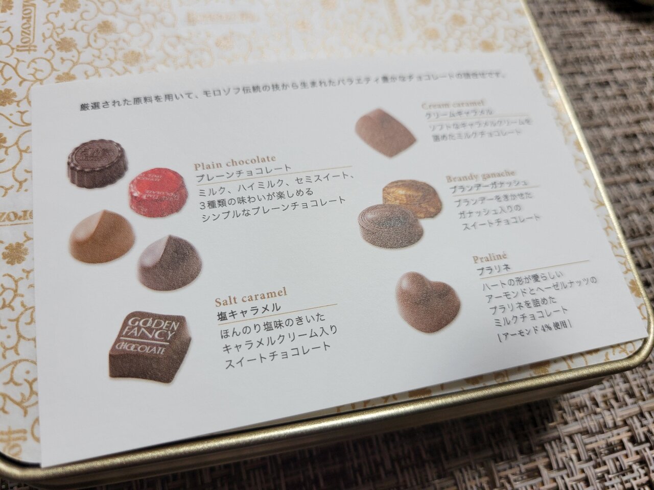 箱を開けるとモロゾフのチョコレートであります!540円で9個入っており、実篤の特別感があるのでなかなか良いのでは無いでしょうか?