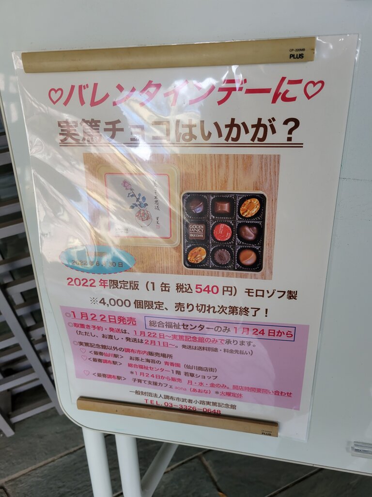 今回の限定チョコは武者小路実篤記念館で購入できます。正確にいいますと、そのほかでも