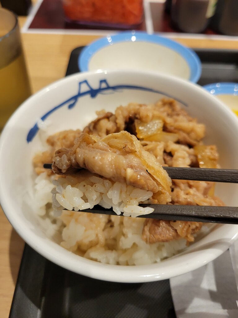 うん!うまい。松屋の牛丼ってなんでこんなにお肉がふっくらしてるんでしょうかね。なかなか自宅でこのふっくら感をだすのは難しいです。