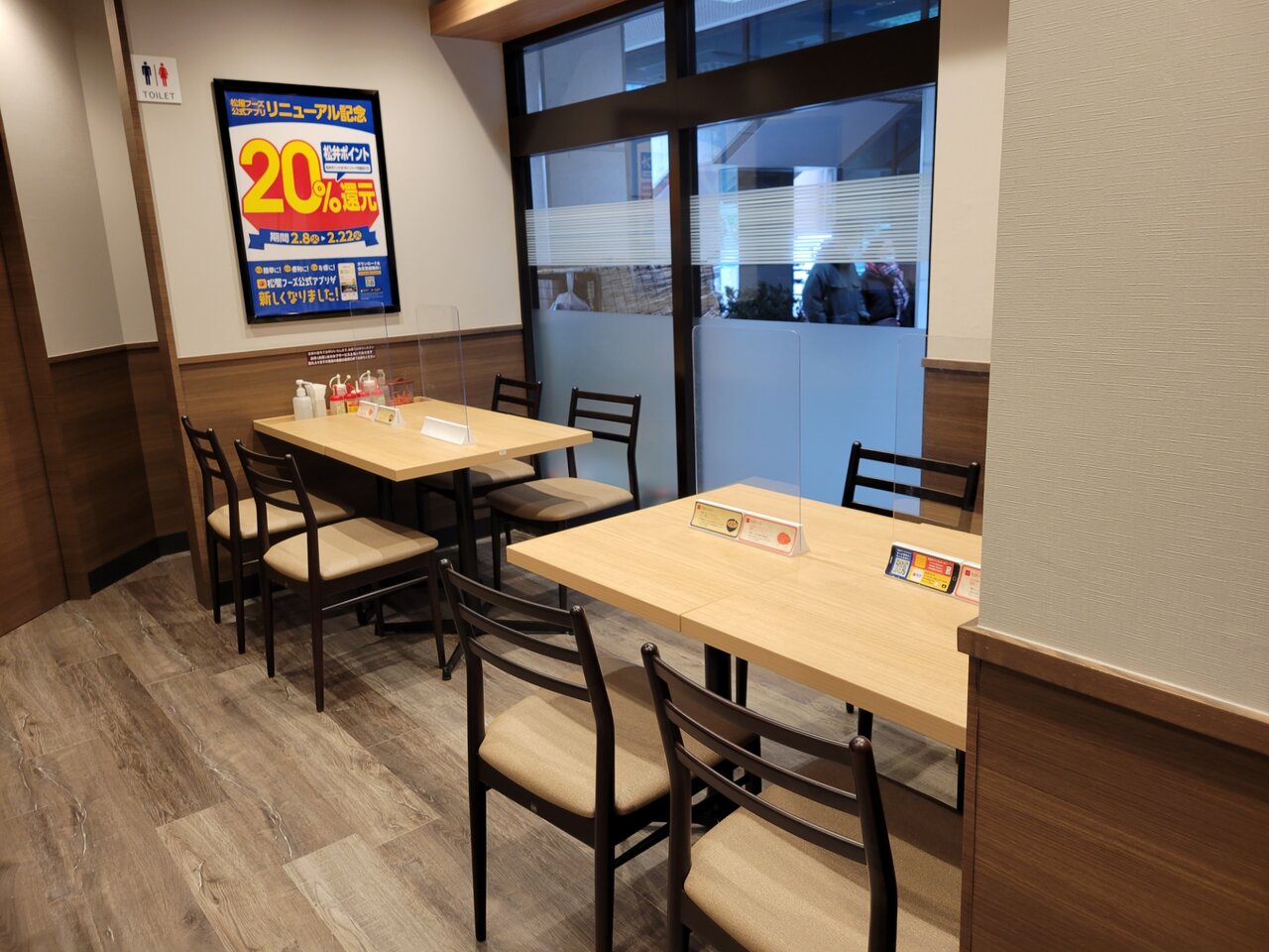 リニューアルされた松屋国領店の店内は"セルフ&コロナ対策"がしっかり