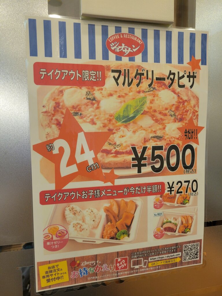 2月18日より"おうちでファミレス サンキューキャンペーン"が、調布のすかいらーくグループ各店舗で開催されております。宅配とテイクアウト、どちらでもキャンペーンが開催されているのですが、テイクアウトのほうが圧倒的にお得ですので近くのジョナサンへ出動したのであります。