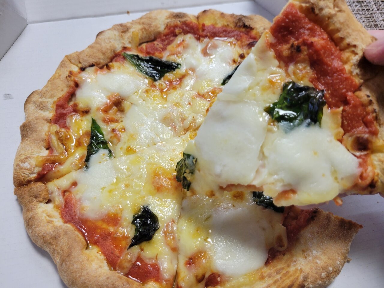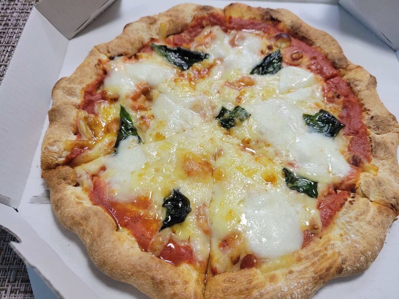 マルゲリータは予想より大きい、そしてチーズがどっさりで生地も美味しそう!