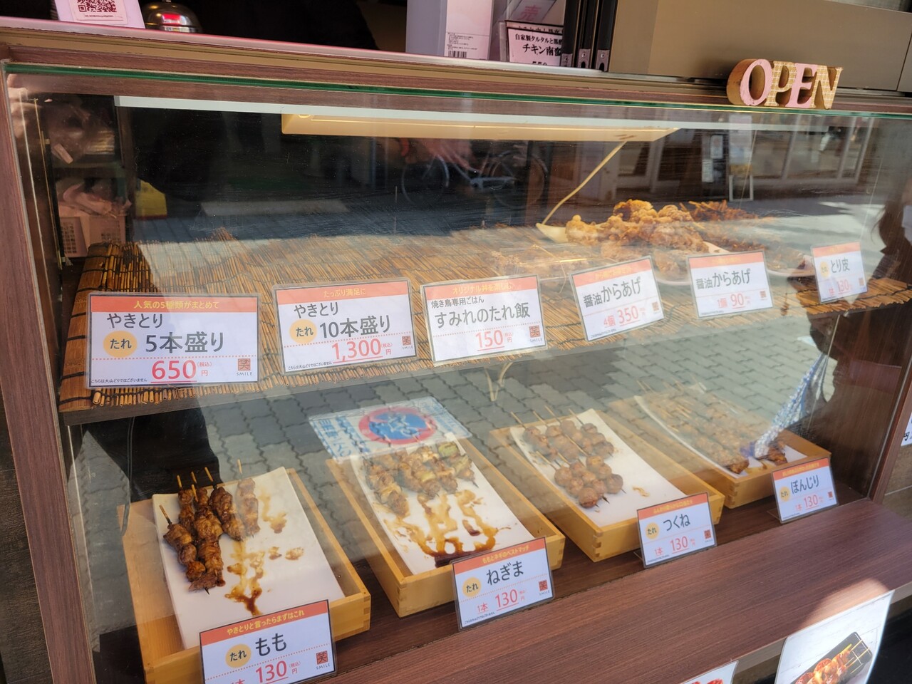 店員さんにお話を聞いたところ、元々はすみれの焼き鳥はもっと高いのですが(私の記憶では2倍くらいした)、テイクアウト用のやきとりはお肉を変えつつ、お客様に買い求めやすい価格で提供することにしたんだとか。個人的には、こういう買い求めやすさをありがたいですね!