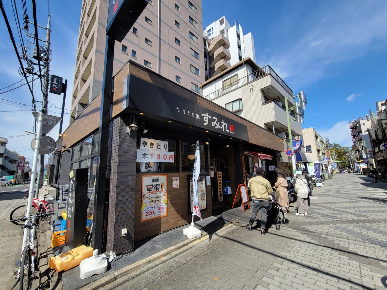 行列の主は"やきとり家すみれ"さんでした。テイクアウトの窓口に行列ができているようです。