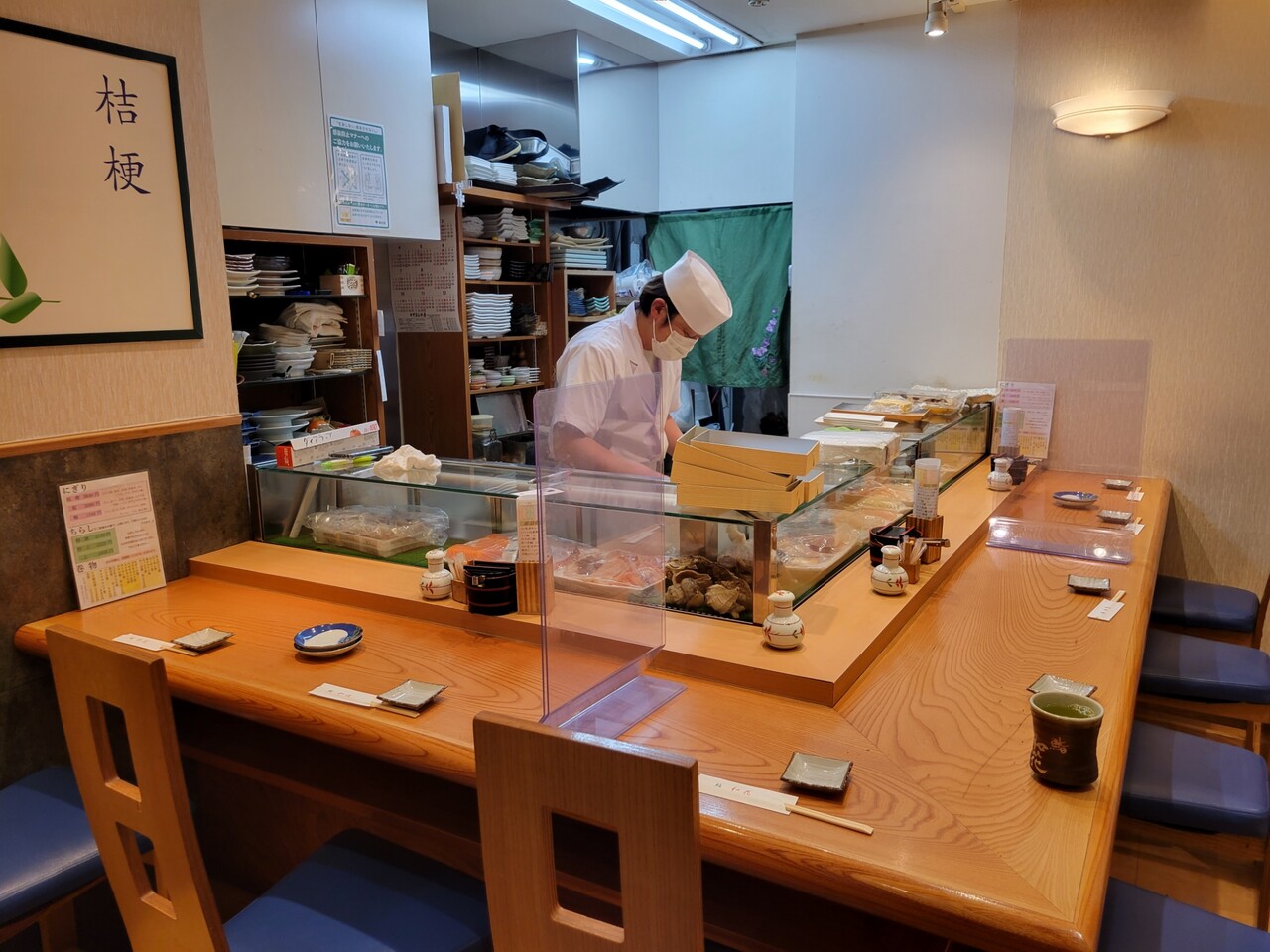 これがタワマン1階のカウンターのお寿司屋さん鮨和花の内装!とっても綺麗