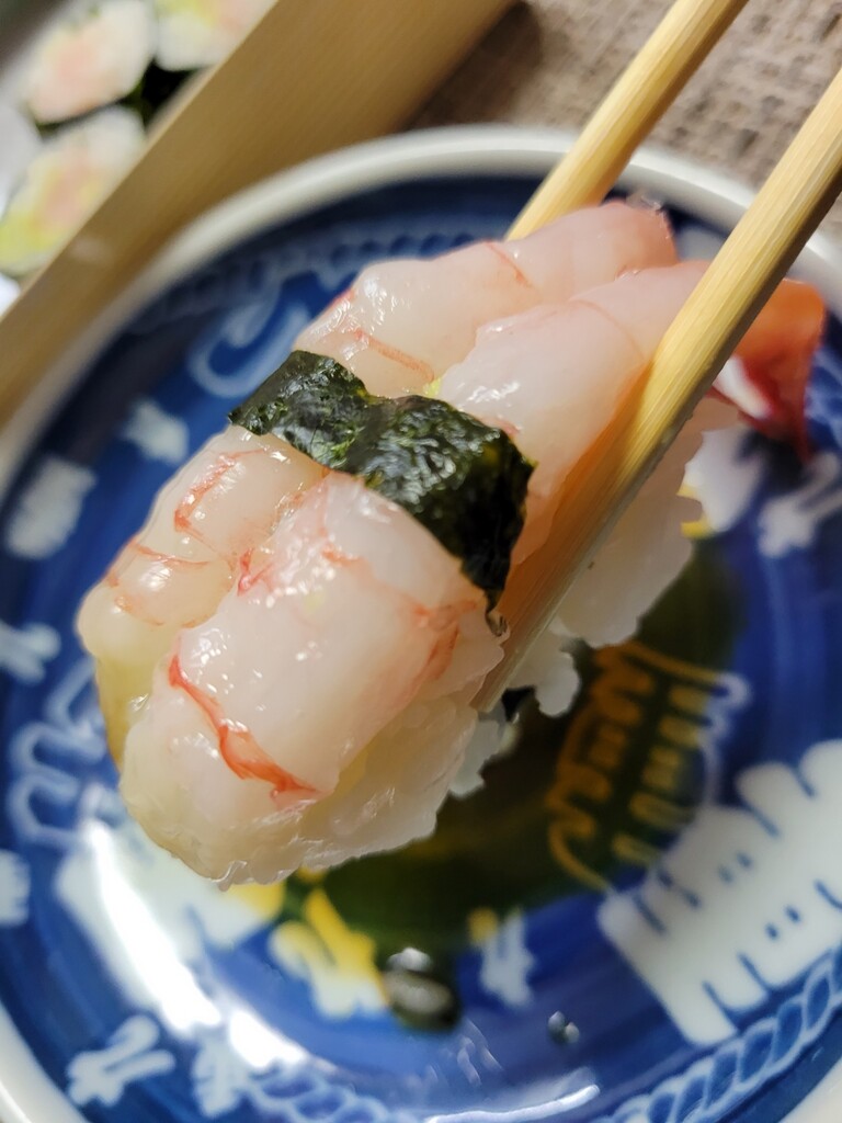 どのネタもネタは大きく程よい握り具合で美味しいです!鮪は熟成のうまさが、味は歯ごたえのある美味しさが、甘エビは大ぶりでぷりりんとしていました!