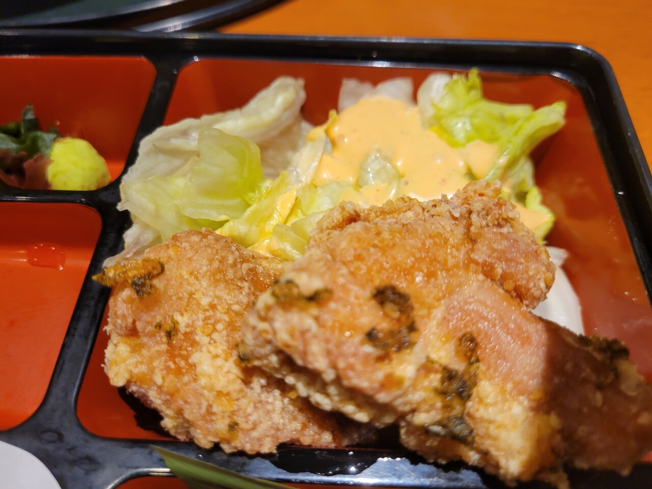 揚げ物が2種、さかなやですから、お刺身もちゃんとついております。