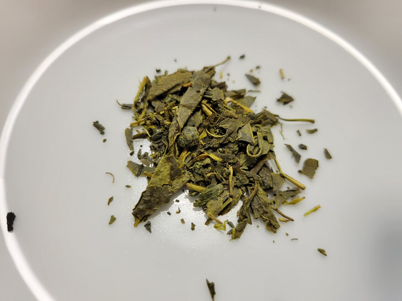 お茶葉を念のためお皿に出して観察したところ、やはり教えて貰った通りお茶の葉が大きいですね。