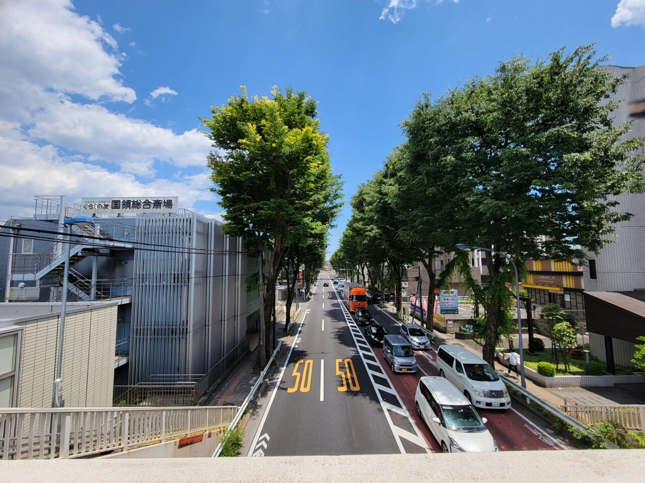 こうみると、先日ケヤキの伐採が甲州街道でありましたけども、結構ちゃんと生き残ってますね。そしてデカいのがよくわかります。普段したを歩いてるだけだとケヤキの存在感がそこまでですが、上からみてみると結構な存在感ですね。これは面白いや。
