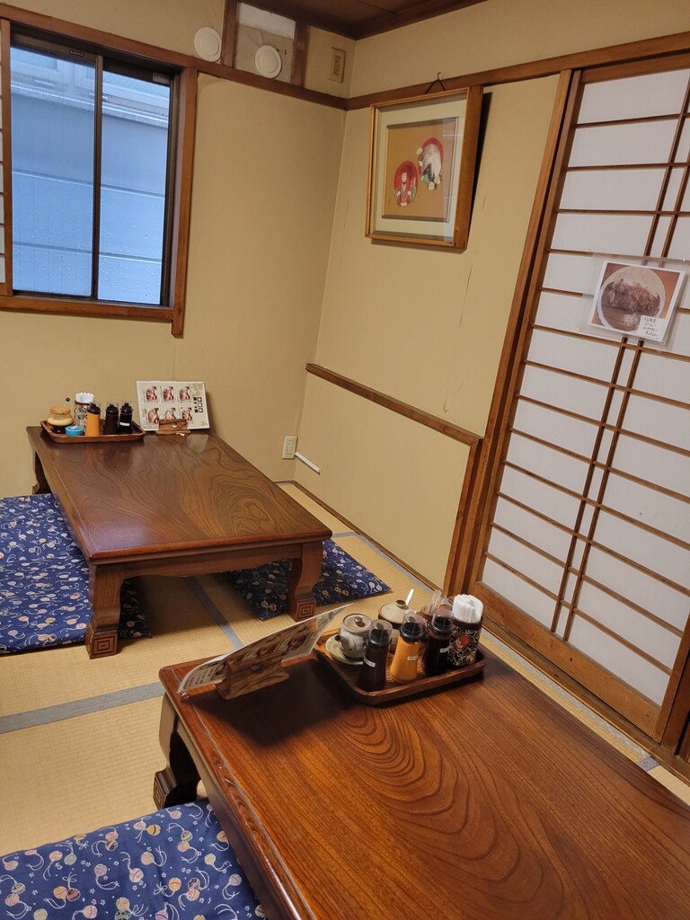 とんかつ仙川ですが色々と年季のはいった感がありました。昔ながらのとんかつ屋さんという感じで、それを期待して入ったのですが、期待通りの印象でしたね。お店はカウンターと座敷がありまして、子連れの私たち家族は座敷に通してもらえました。