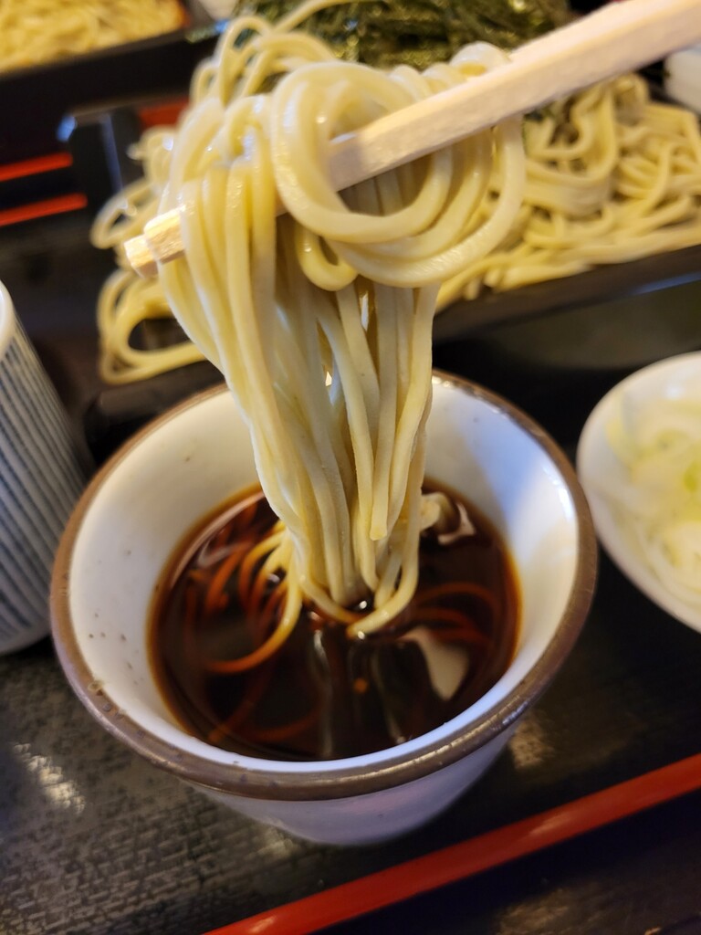 うんうん。どんどんずるずるいけちゃう。どんどんずるずる。どんどんずるずるうううう。夢中で蕎麦をすすります!お蕎麦は石臼挽蕎麦と玄関に看板がかかってましたね。そばの色合いは少し緑がかってるのが特徴です。