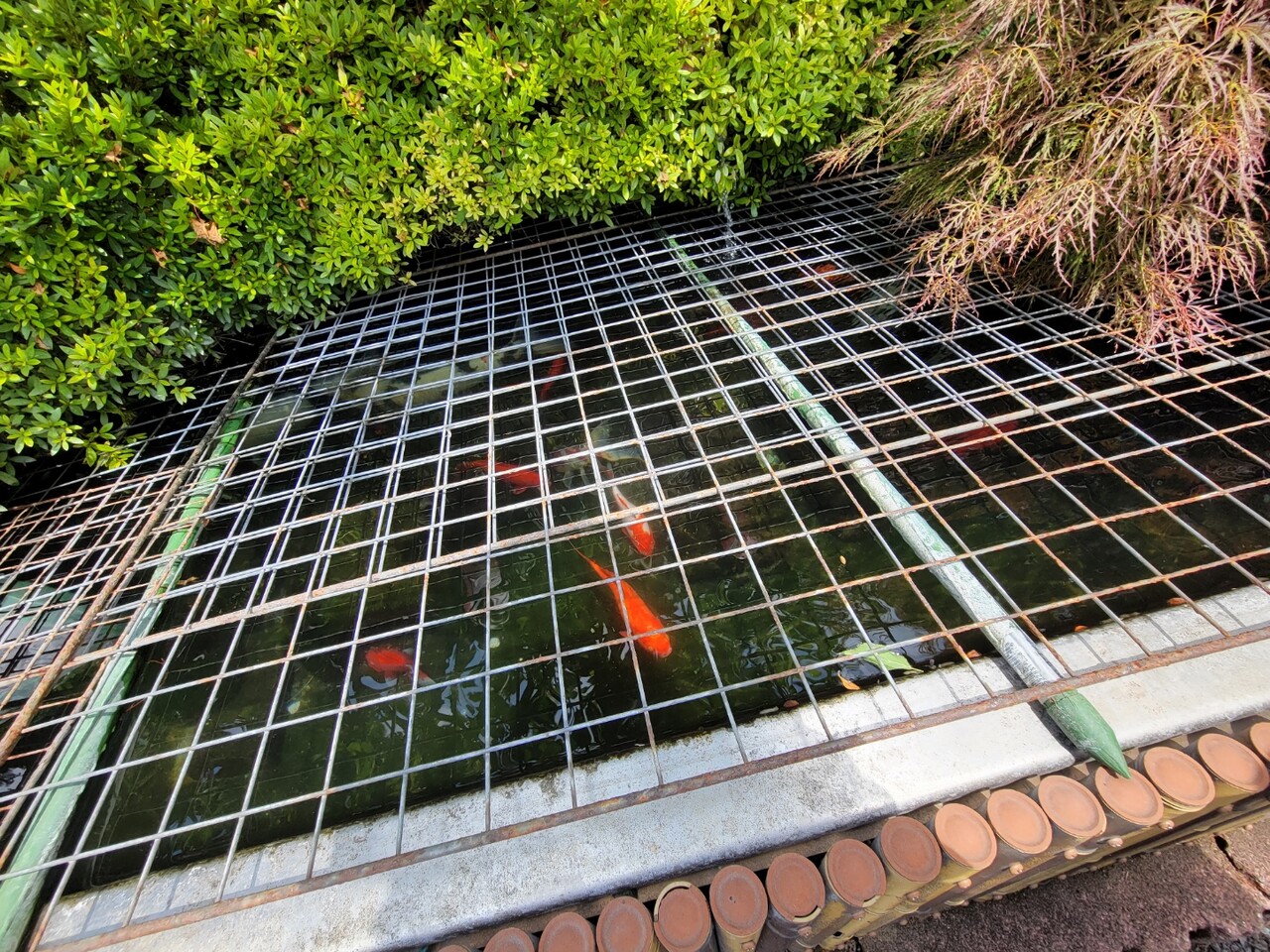 開店までの時間は、鯉が店の前で泳いでいたので、子供たちと鑑賞して待ちました。