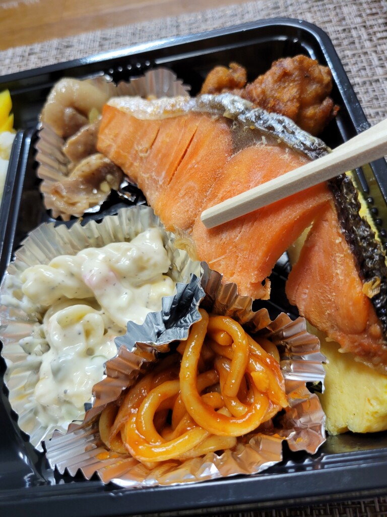 というわけで購入しましたのが「イカフライ弁当」と、「さけ弁当」であります。
