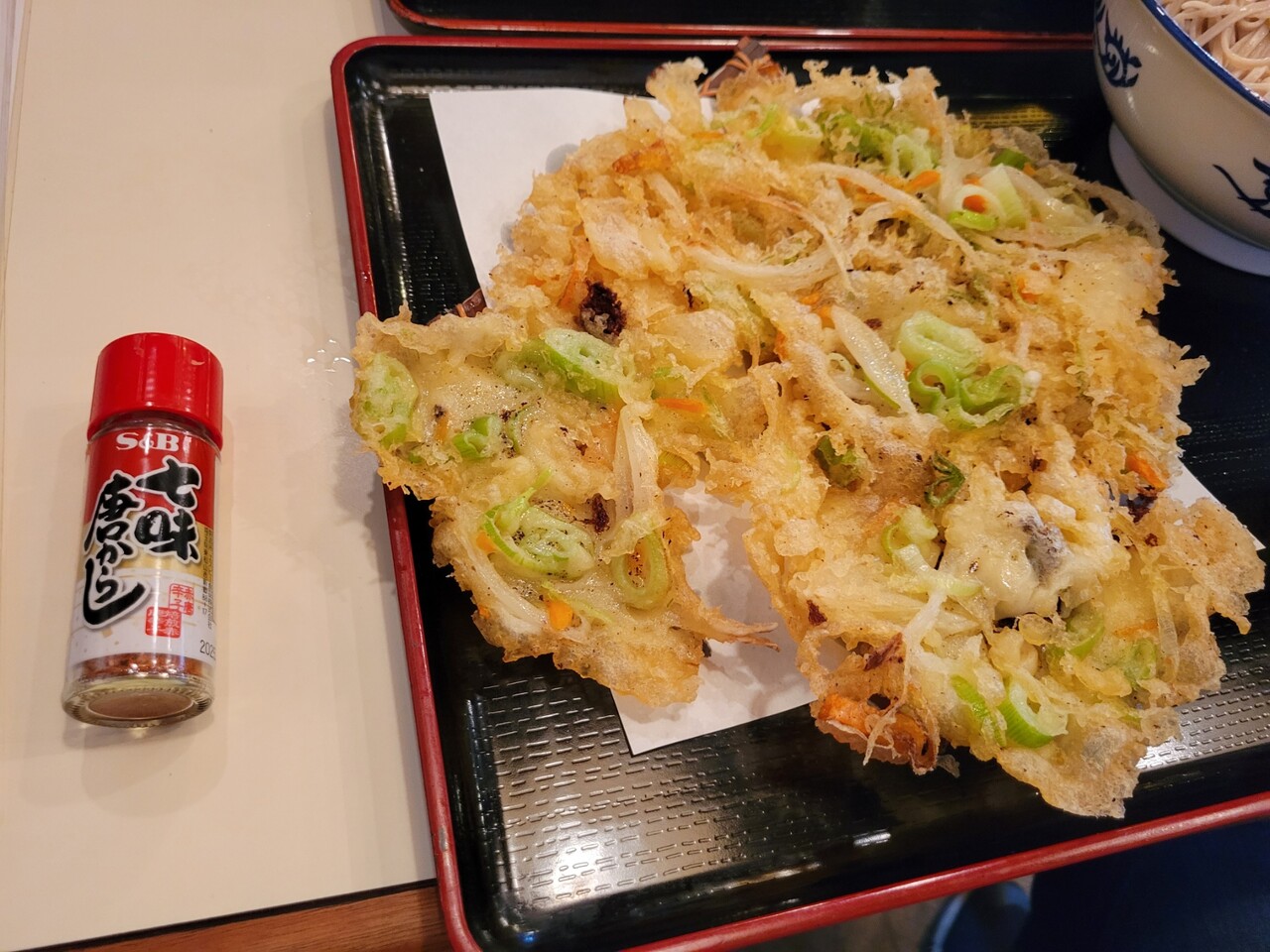 私はここの特大かきあげ蕎麦がでっかいとの噂を聞いたので、調布のでっかいシリーズにしようと思った関係で、特大かきあげ蕎麦を注文しました。
