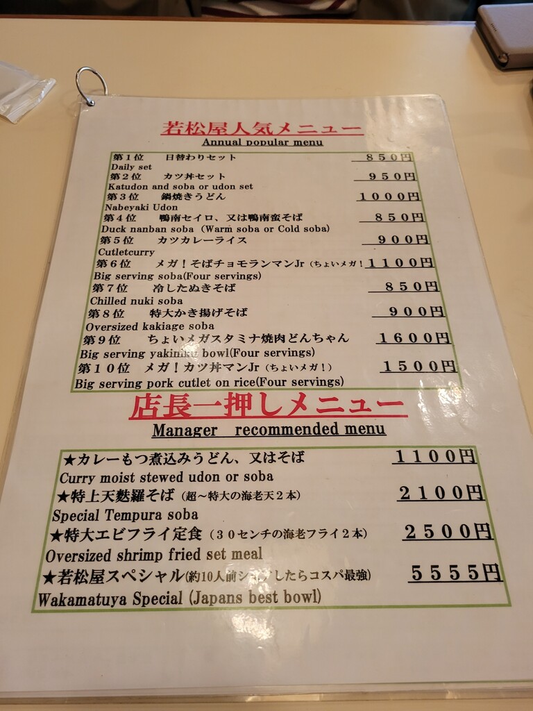 若松屋の人気メニューは以下の通り。大盛り系でないのも人気のようですね!