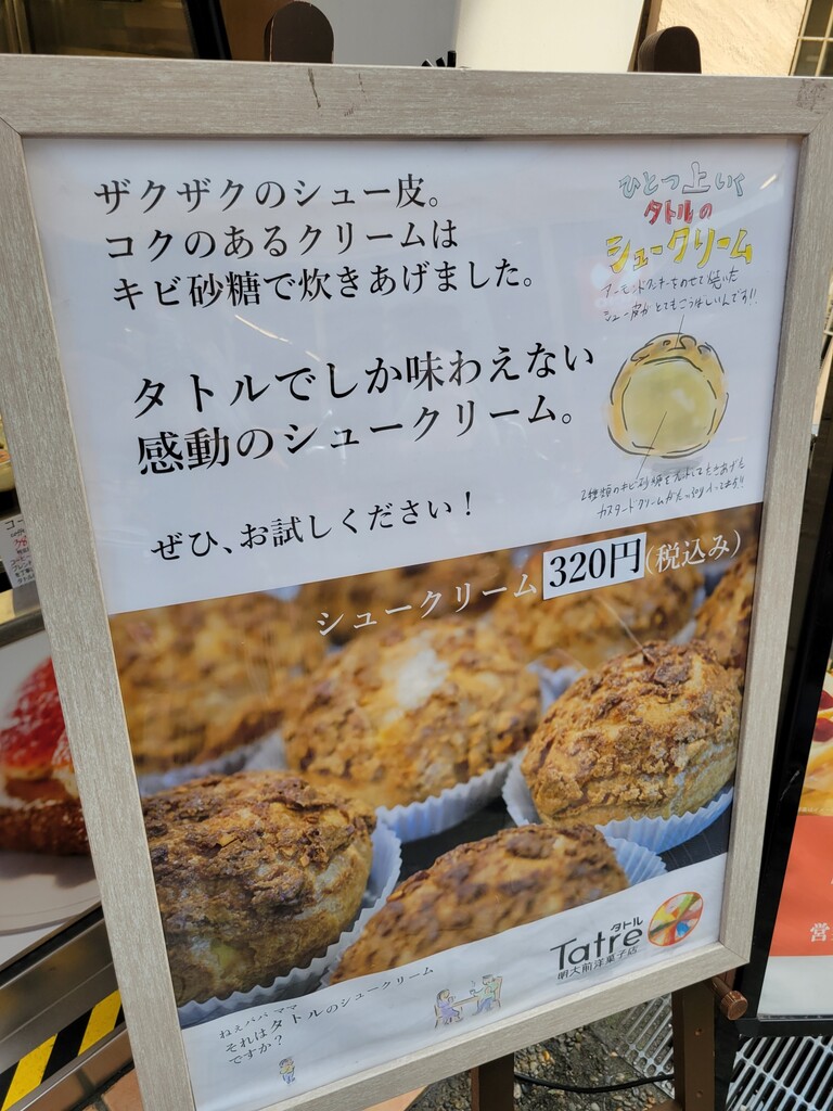 こちらでシュークリーム買い終わった後に、横を通り過ぎた小さなお子様連れの奥様が、「あっこの店、明大前の話題の店じゃない!!」と興奮気味に語られて、お店に並んでた関係で、おお自分の直感は間違っていなかったんだと、自己肯定したのであります。