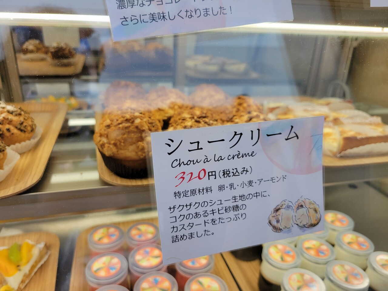 因みに毎日ちょうふ通信を読んでくださっている方はわかるかと思うのですが、昨日ご紹介したココカラファインで買い物を済まして、横に移動したら見つけたってだけではあるんですが(笑)、妻が色々とココカラファインで買いだめした関係で、お財布は氷河期。美味しそうなスイーツを見つめるも、我が家はシュークリームだけで我慢でありますが、ショーケースの写真を皆様へはご共有いたします。