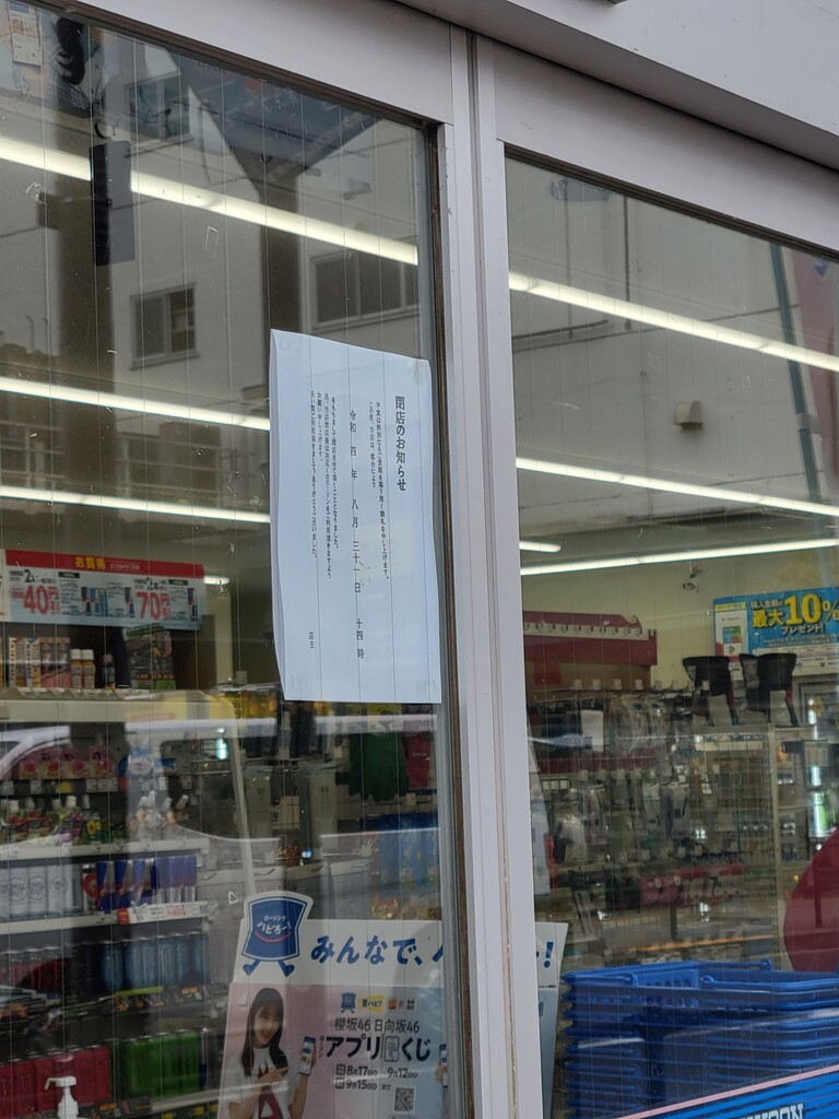 周りはスーパーが密集していて、確かに競合が物凄く強い位置にありつつ、とはいえ気軽に入れるというコンビニの魅力で、当日もちょこちょこお客さんが入っていたんですが、残念ながら閉店となってしまうようです。