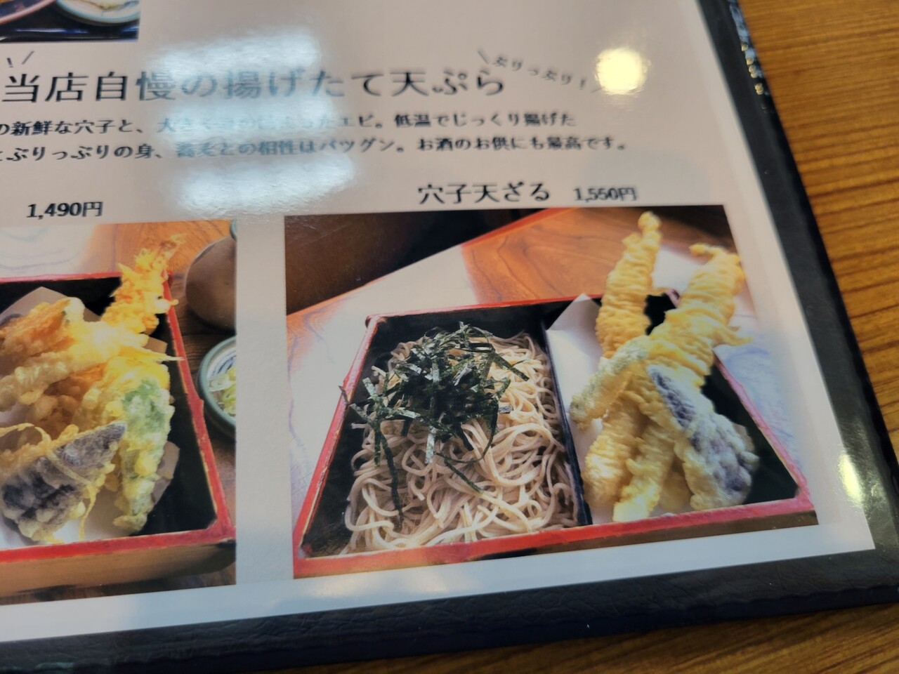 で、感動は神対応だけではなくて、食事にも感動したんですよ。というか度肝を抜かれましたね。前回食べたとろろそばが美味しくておいしくて、またとろろそばを食べたかったのですが、記事にするなら違うメニューにしなきゃなと思って、当店自慢となっていたおススメの穴子天ざるを頼んだんですよ。これがまた大正解。