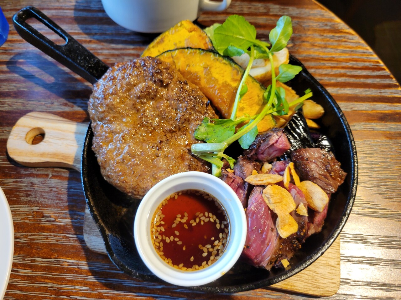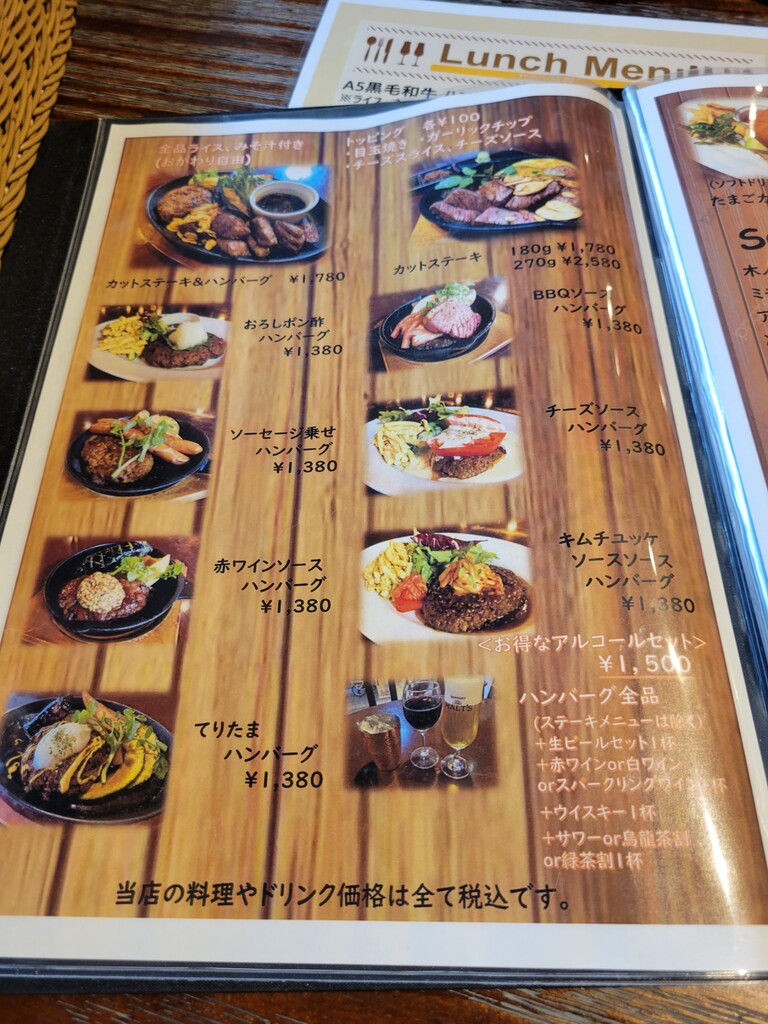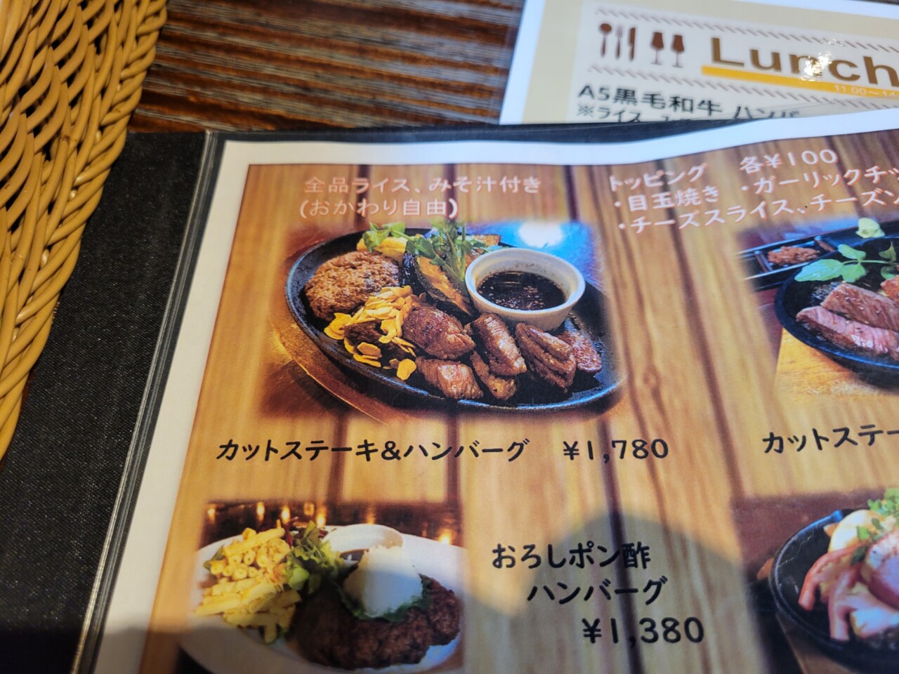 メニューは豊富でお得なランチもあったんですが、ハンバーグ&ステーキのお店なので両方でてくるメニューを探したところ、"カットステーキ&ハンバーグ"がありましたので、頼んでみる事にしました。