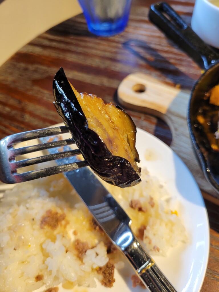 そうです!ナスですよ!ナス!いまが旬のナスが鉄板で温められて、お野菜の甘みのあるお汁がじゅわわーと口いっぱいに広がったわけです。これはとてもいい!