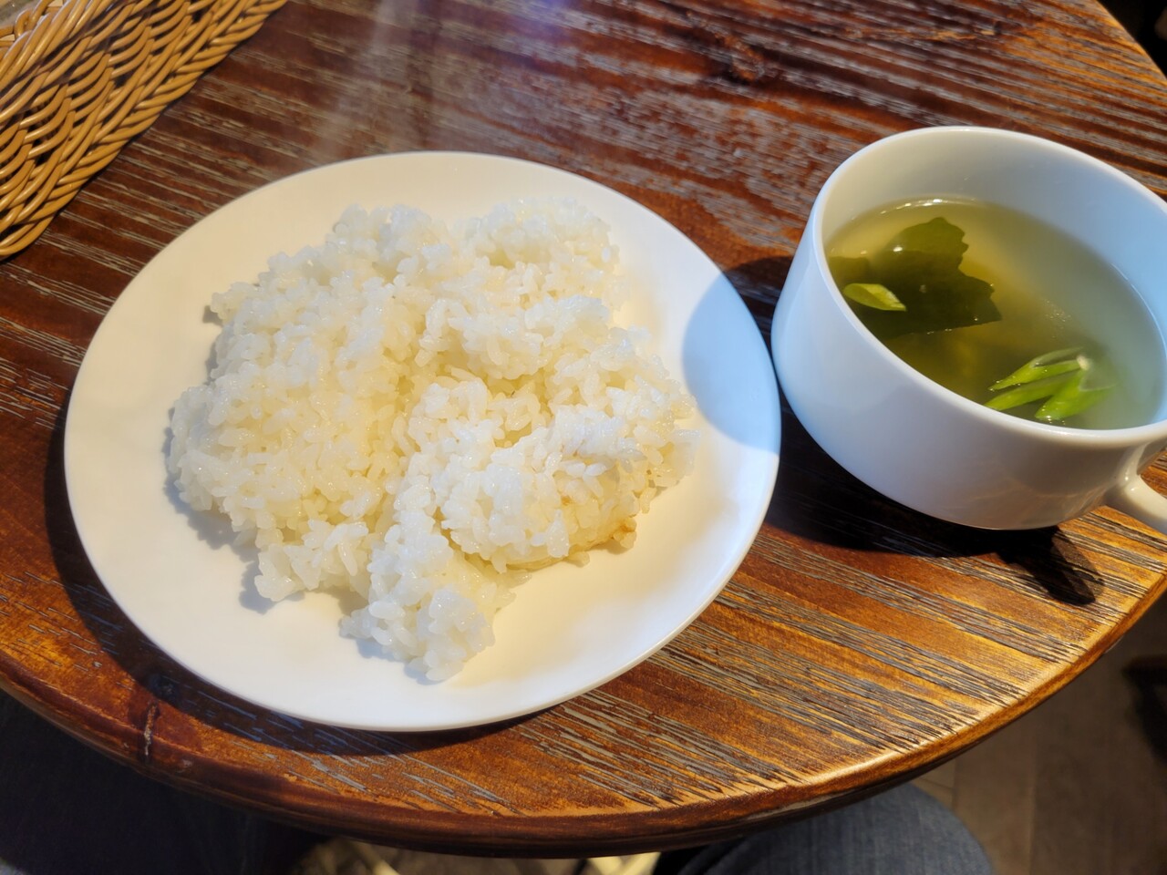 というわけで注文して待っていますと、まずはライス&スープがでてきました。