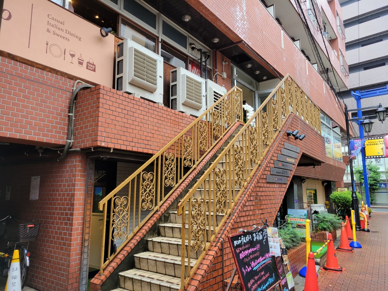 お店の場所は調布銀座の旧甲州街道に面するビルの、以下の写真の階段から上がってすぐのところにあります。