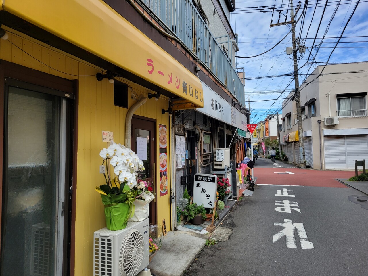 お店の場所ですが、柴崎駅の八百屋さん「くだもの やさい アオキ」さんの前を国領側に進む道を真っ直ぐ進むと黄色いカラーのお店があるので、そちらが"ラーメン 悔いなし"さんであります。