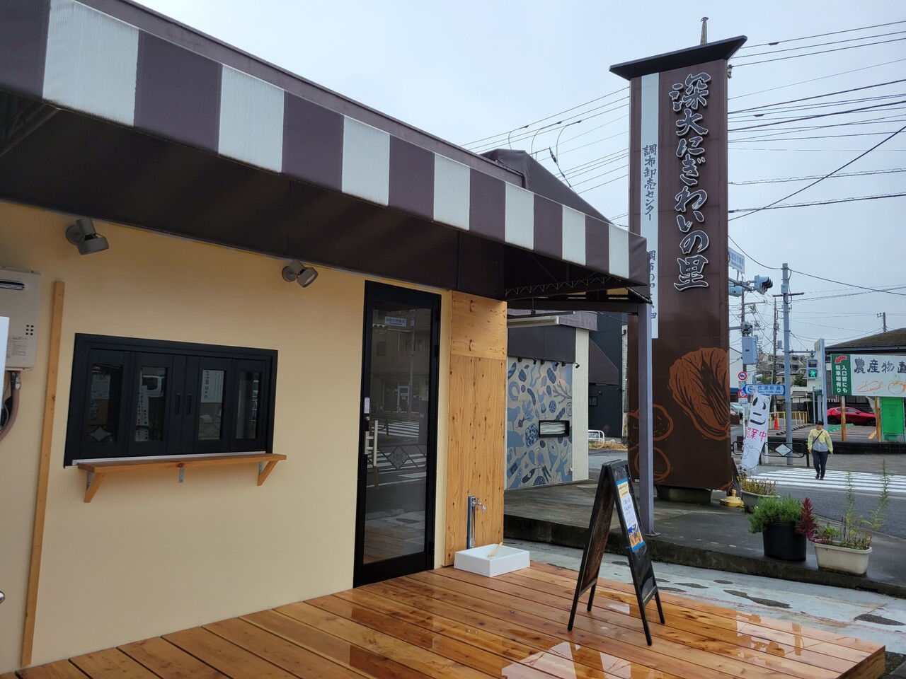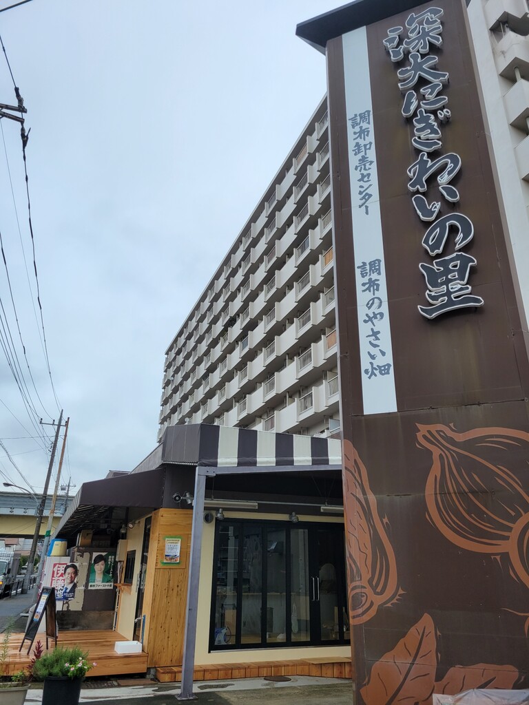 どどーん。深大にぎわいの里の超デカ看板の横への出店となります。