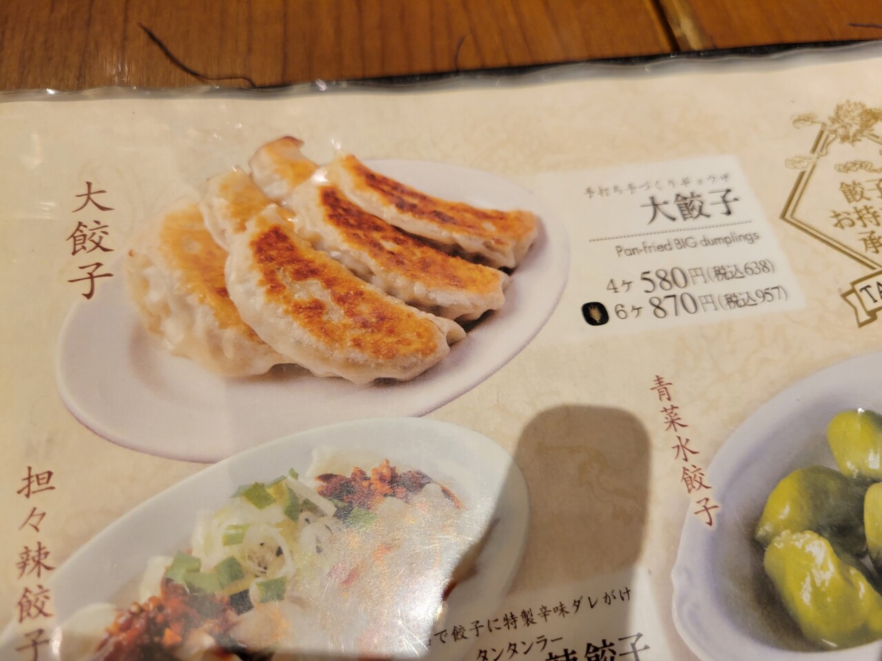メニューをチェック、大餃子の他にも美味しそうなので注文