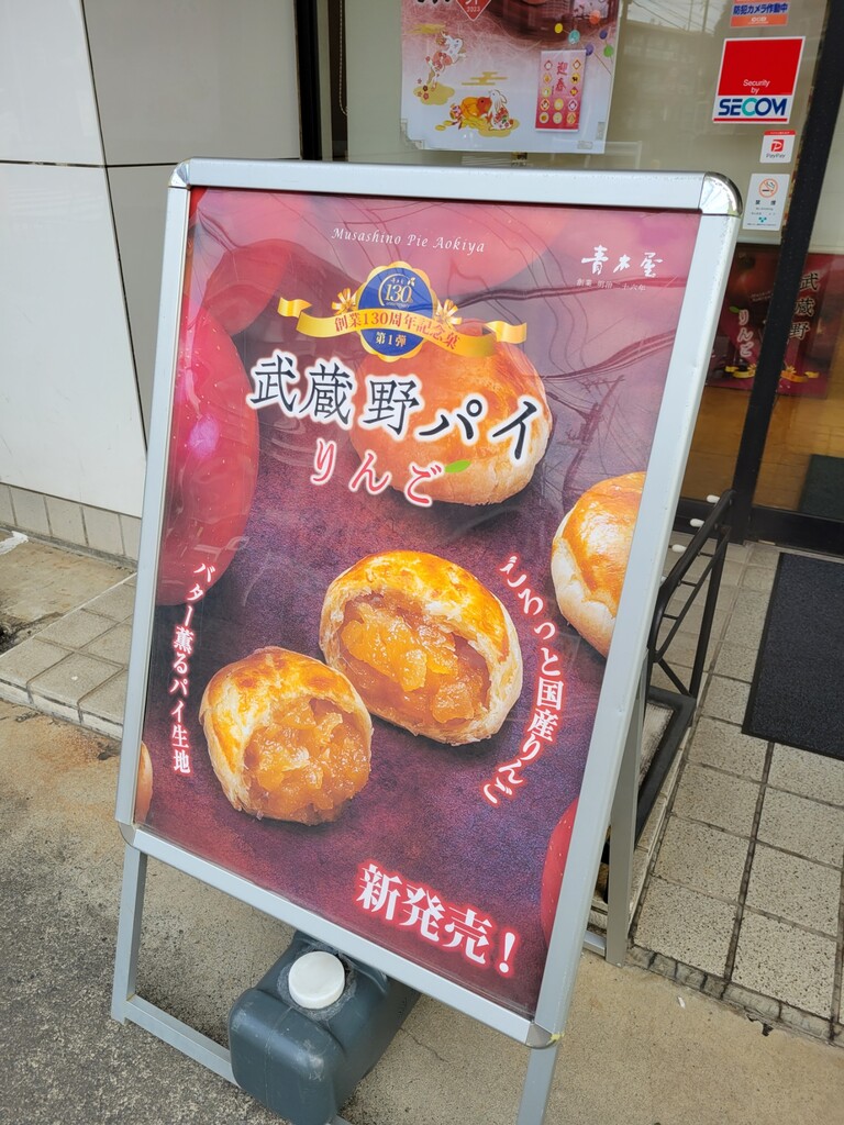 因みにお餅を買った日に、武蔵野パイりんごも新発売の看板がでていたので買ったんですよね。