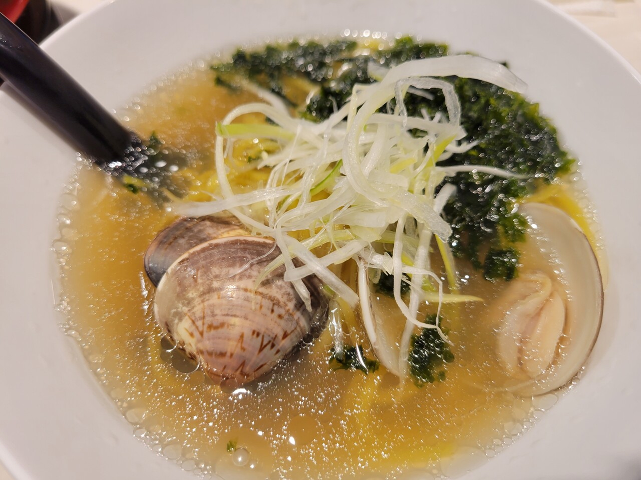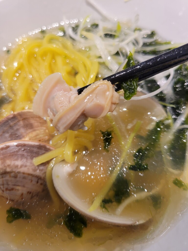 魚べいマニアの私の目には、これは元々うどんとしてあったメニューをラーメン用にカスタマイズして、新商品として魚べいがNEWとかドヤってるだけだな!!と思ったわけですが、、、、この貝だし塩ラーメン。結論いうと美味しいのです!