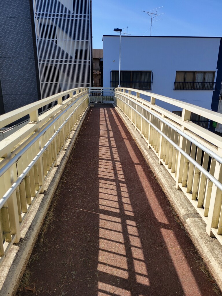 ふむ、お名前プレートがないと盛り上がりにかけますね。シンプルな歩道橋であります。